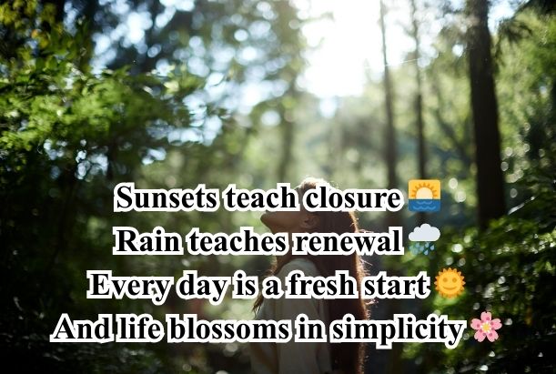Nature teaches life’s lessons through its beauty simplicity and balance. From flowing rivers and tall mountains to blooming flowers and shining stars these natural life quotes inspire peace growth and mindfulness. 🌳🌸🌊